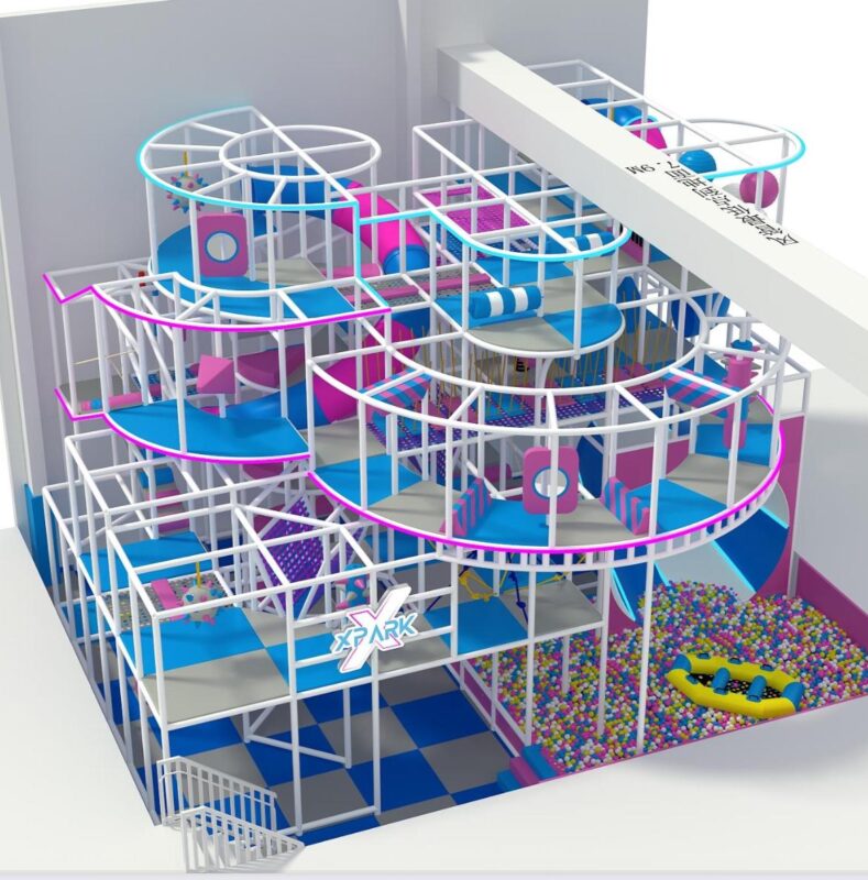 The play area is a vibrant and interactive space designed for kids. It features a boat inside a ball pit, which adds a fun and imaginative element. The area includes various slides, Wave, Horn, and Spiral, catering to different age groups and energy levels. Additionally, there’s a Rainbow Net for climbing and balloon obstacles, creating an exciting environment for exploration. With a capacity of more than 50 children, this area is perfect for high-traffic play, events, and group visits while ensuring a safe and enjoyable experience.